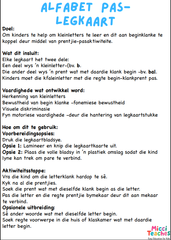 DIT IS N OPVOEDKUNDIGE SPELETJIE WAAR KINDERS LETTERS VAN DIE ALFABET MET PRENTE MOET PAS