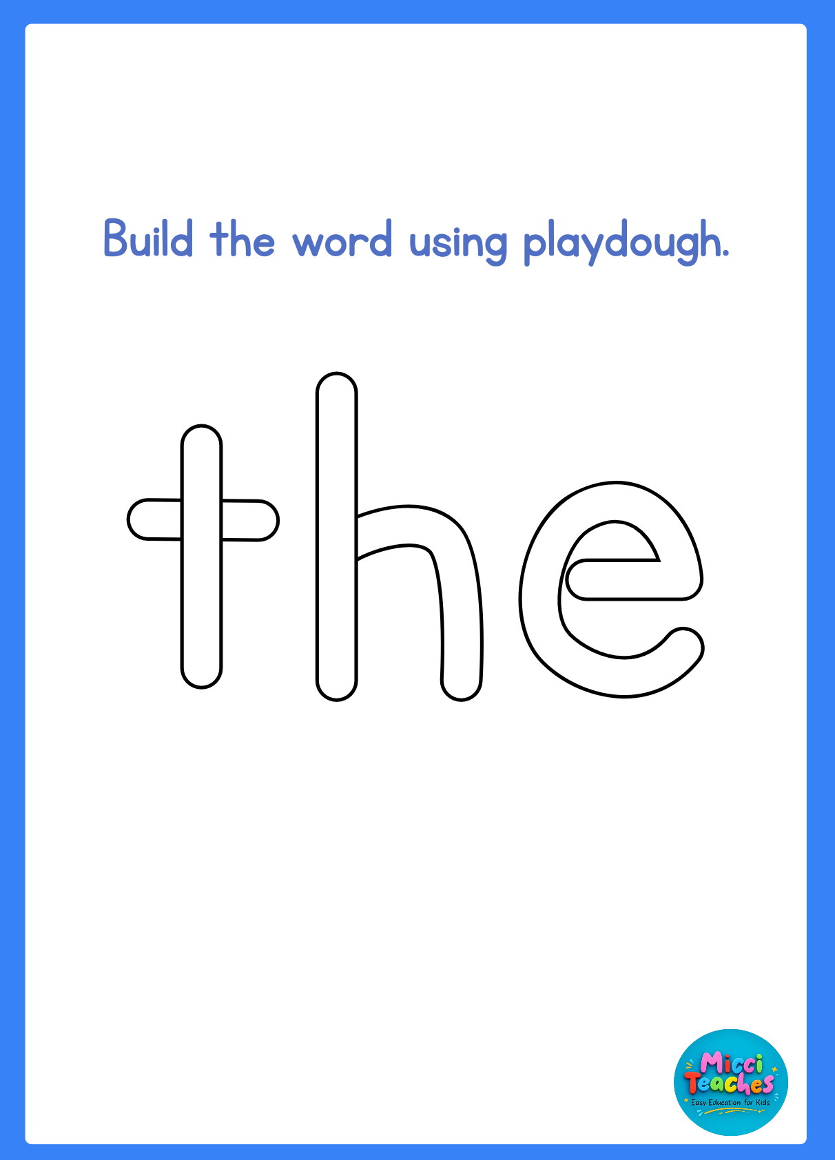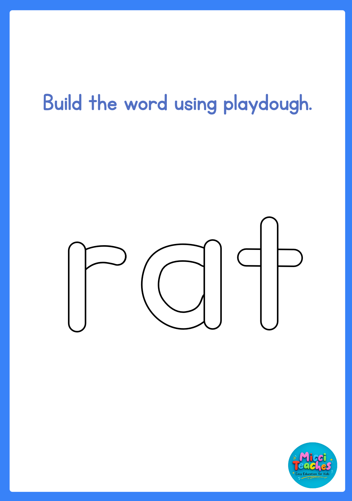 In this fun, multi-sensory activity, children roll small playdough “snakes” and shape them into letters to physically build words. Instead of only seeing the word on paper, the child touches, forms, and moves each letter, which helps the brain remember the sounds and the spelling.