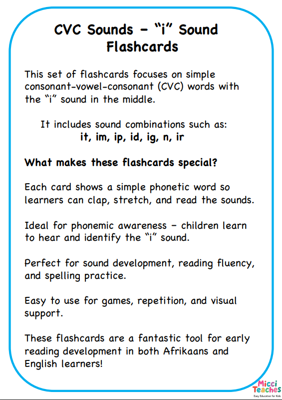 What makes these flashcards special? Each card shows a simple phonetic word so learners can clap, stretch, and read the sounds. Ideal for phonemic awareness – children learn to hear and identify sounds. Perfect for sound development, reading fluency, and spelling practice.