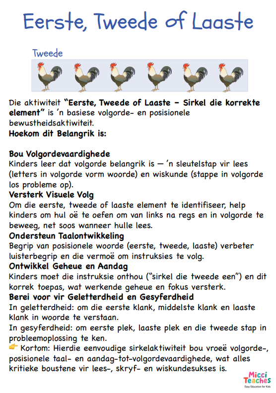 Hierdie eenvoudige sirkelaktiwiteit bou vroeë volgorde-, posisionele taal- en aandag-tot-volgordevaardighede, wat alles kritieke boustene vir lees-, skryf- en wiskundesukses is