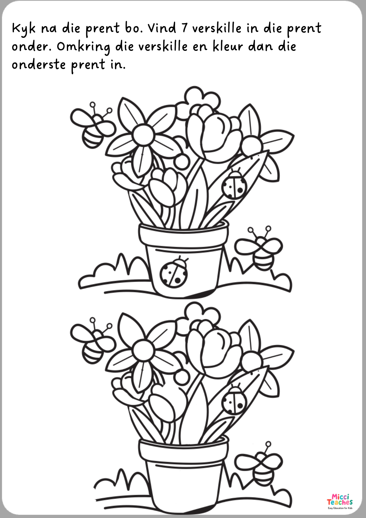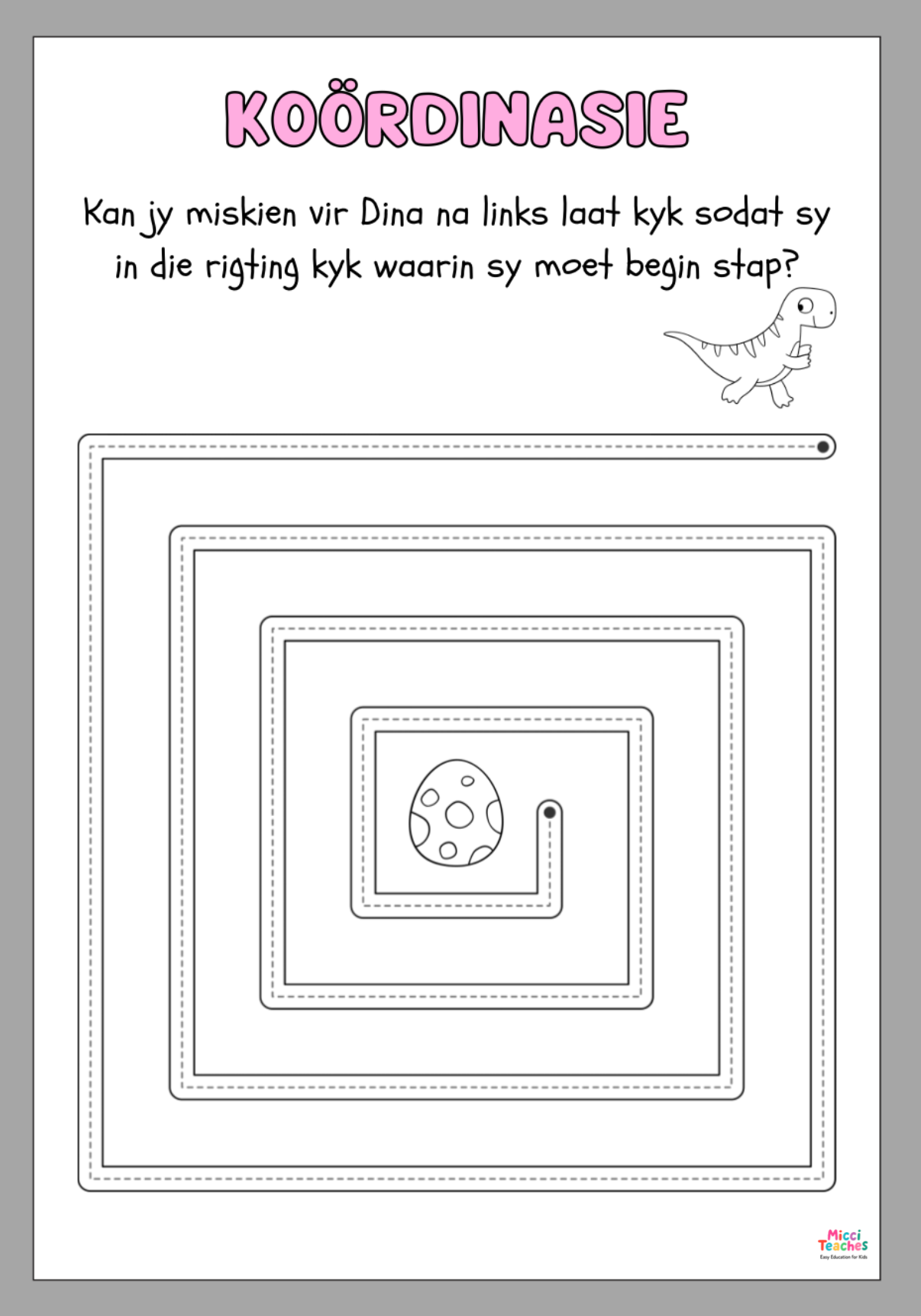 Werk rustig deur die aktiwiteite – daar is geen rede om te jaag nie. Doen ’n maksimum van 5 bladsye per dag. Lees en verduidelik elke instruksie vir jou kind voordat julle begin. Maak seker jou kind verstaan presies wat om met elke aktiwiteit te doen. Moenie die werk namens jou kind voltooi nie – help eerder om onafhanklikheid te ontwikkel. Wys belangstelling in elke poging en gee altyd positiewe terugvoer.