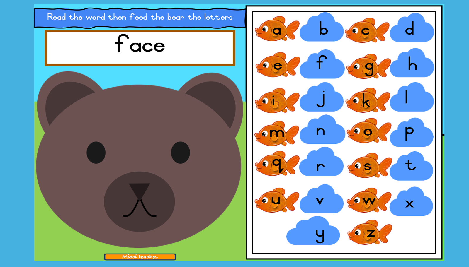 The learner sees the letters, hears the sounds, says the word aloud, taps each sound (movement), and builds the word.