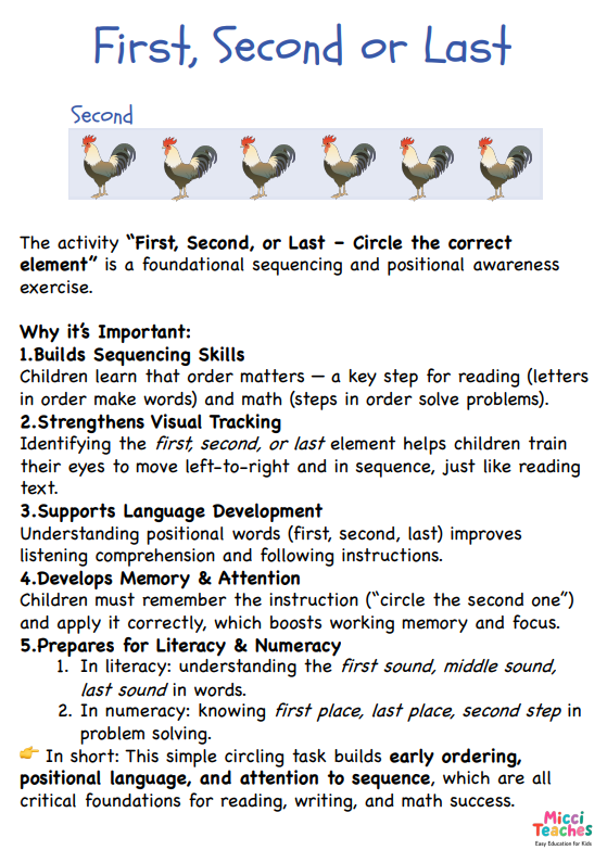 This simple circling task builds early ordering, positional language, and attention to sequence, which are all critical foundations for reading, writing, and math success.