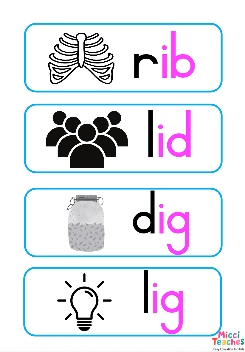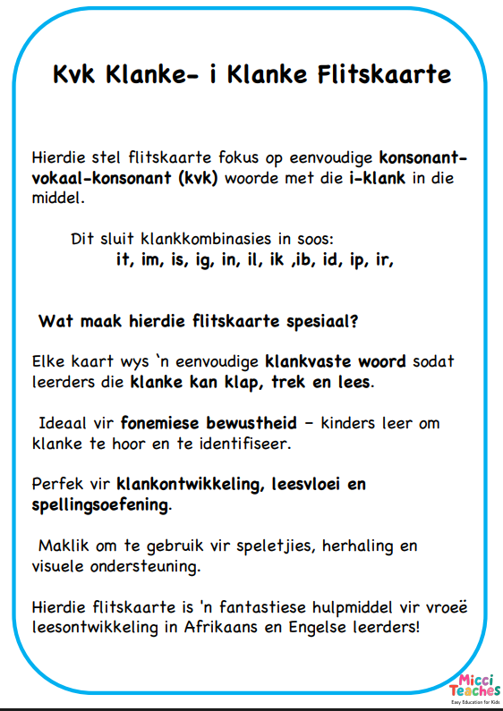 KAARTE MET KORT KVK WOORDE.BELANGRIK VIR KLANKBEWUSTHEID EN LETTER-LKLANK- KOPPELING