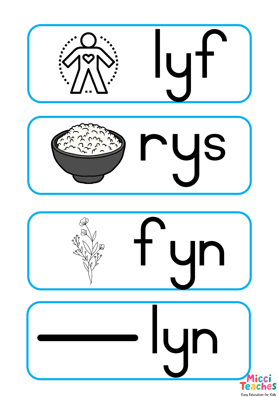 KAARTE MET KORT KVK WOORDE.BELANGRIK VIR KLANKBEWUSTHEID EN LETTER-LKLANK- KOPPELING