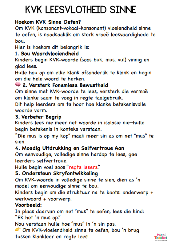 KVK Leesvlotheid Sinne – ek, het, ‘n, dit, is, my – Kort U
