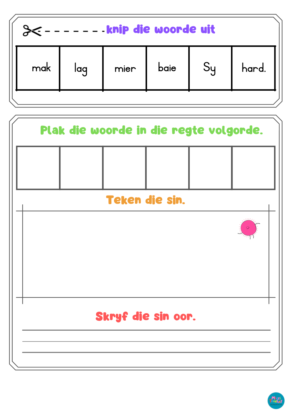 Kinders leer nuwe woorde en hoe om sinne te bou. Hulle sien dat sinne altyd ’n onderwerp + werkwoord + res van die idee het, selfs al is die sin snaaks. Kreatiwiteit en verbeelding. Lawwe sinne soos “Die hond ry skool toe op ’n fiets” maak kinders lag en help hulle om verbeelding te gebruik. Dit maak skryf en lees minder “streng” en lekkerder.