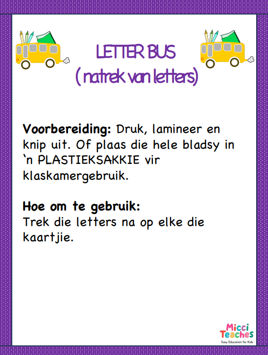 Trek die letters na op elke die kaartjie.