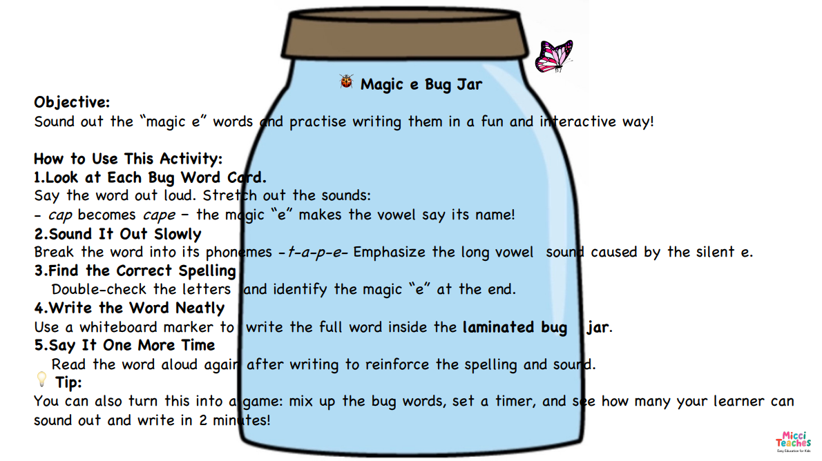 Sound out the “magic e” words and practise writing them in a fun and interactive way!