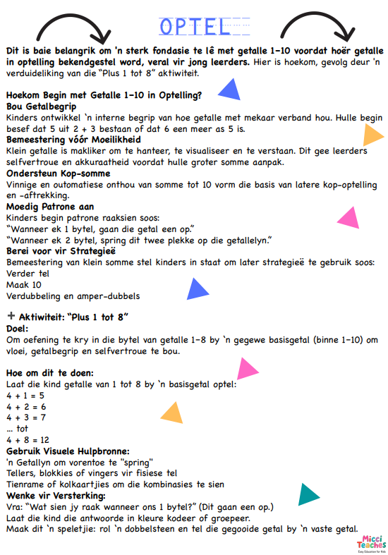 Klein getalle is makliker om te hanteer, te visualiseer en te verstaan. Dit gee leerders selfvertroue en akkuraatheid voordat hulle groter somme aanpak.