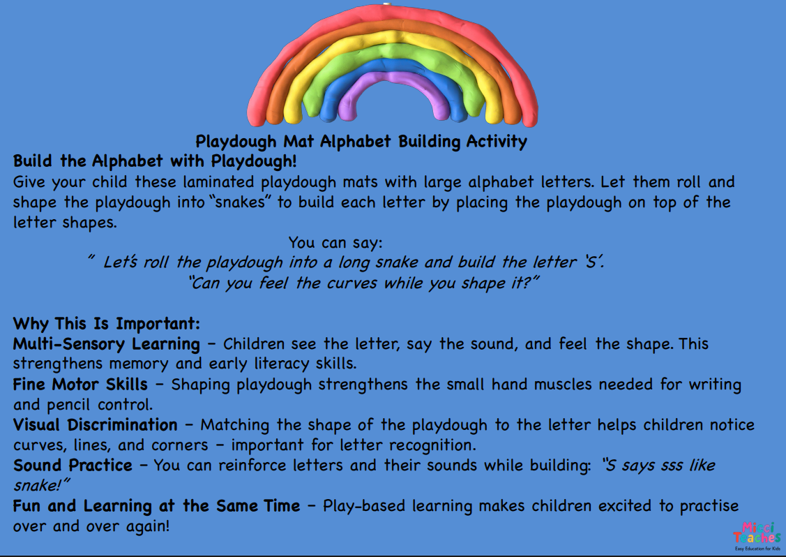 Children see the letter, say the sound, and feel the shape. This strengthens memory and early literacy skills.