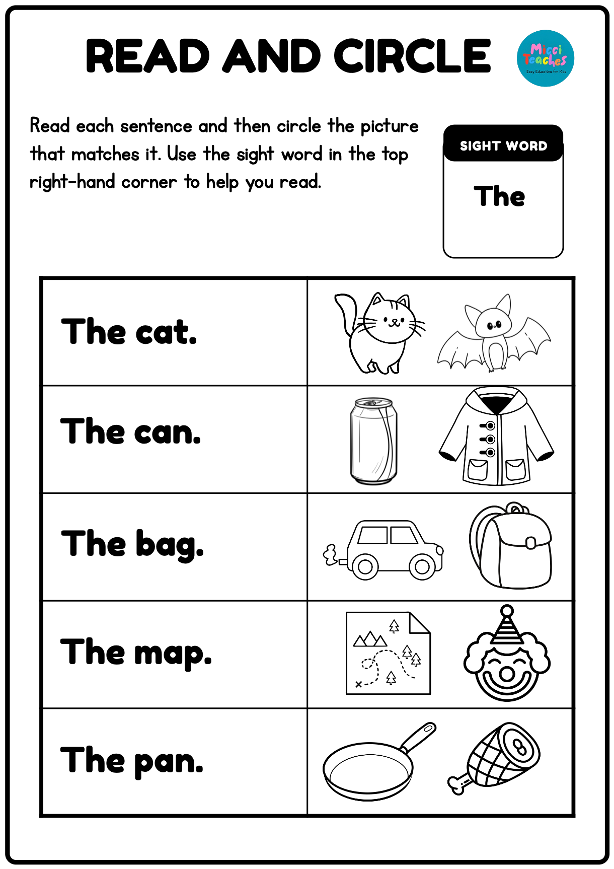 Reads the sentence (no guessing, no sneaky sight-word overload).