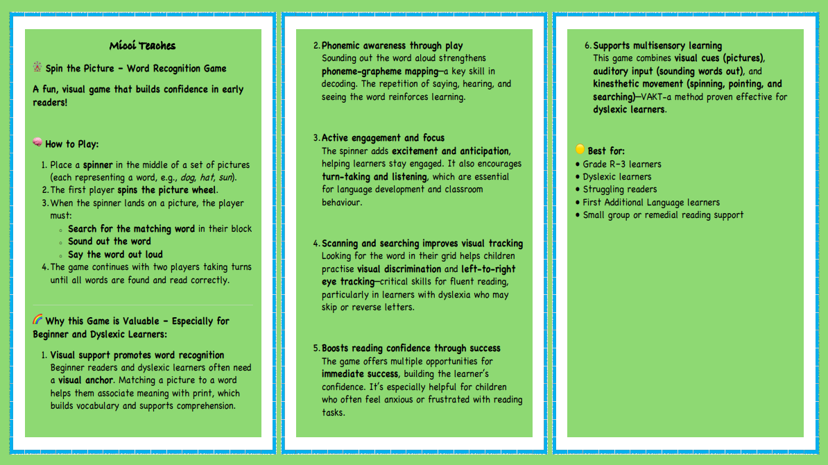 Scanning and searching improves visual tracking Looking for the word in their grid helps children practise visual discrimination and left-to-right eye tracking critical skills for fluent reading, particularly in learners with dyslexia who may skip or reverse letters.