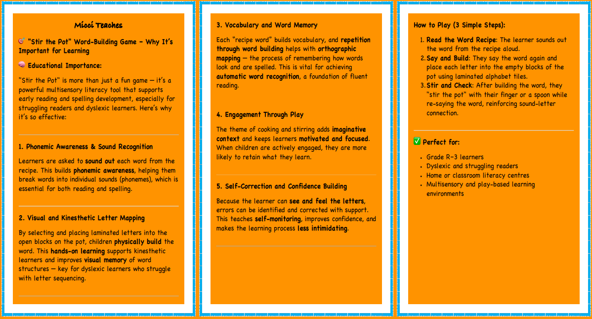 Learners are asked to sound out each word from the recipe. This builds phonemic awareness, helping them break words into individual sounds (phonemes), which is essential for both reading and spelling.