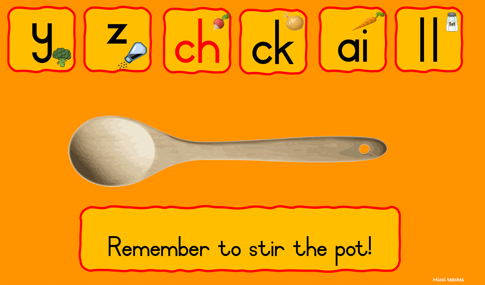 Learners are asked to sound out each word from the recipe. This builds phonemic awareness, helping them break words into individual sounds (phonemes), which is essential for both reading and spelling.