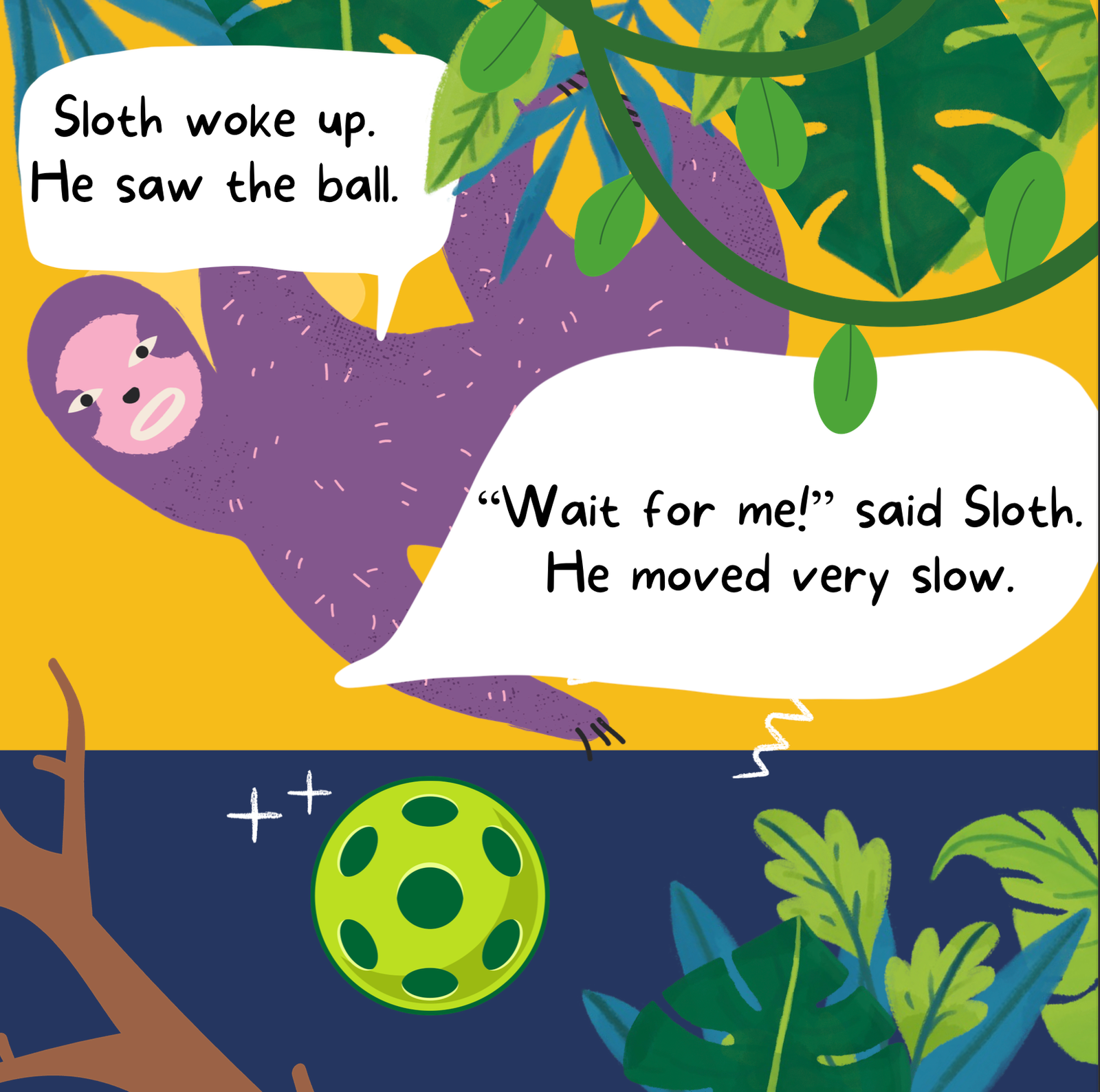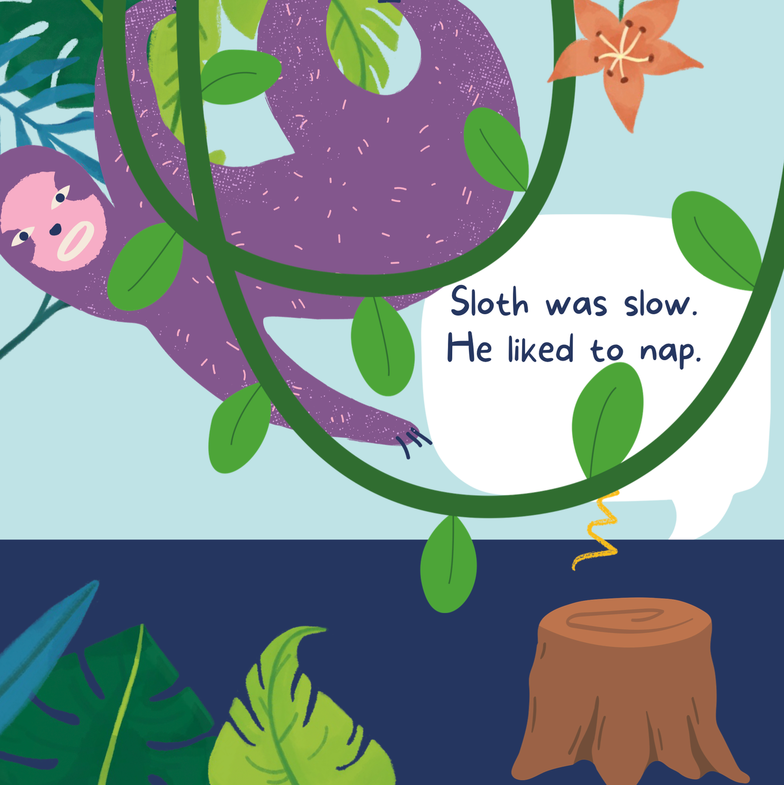 There’s Sloth, who moves slowly and loves to rest.