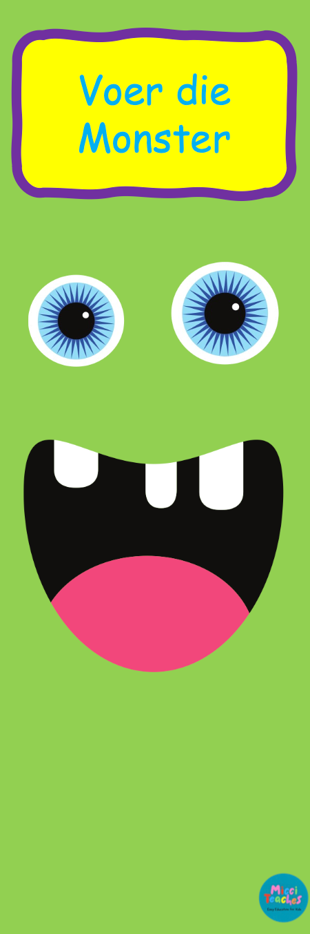 Knip die Monster kaartjie uit, lamineer, klank woord vir woord en voer dit vir die honger monster!
