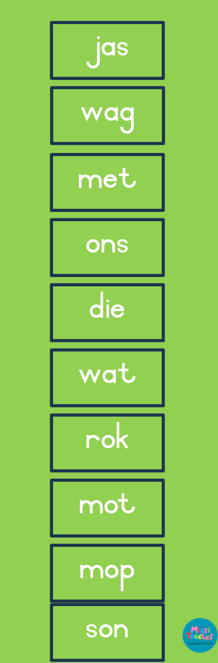 “Voer die Monster” is ’n prettige speletjie waar kinders ’n monster “voer” deur drie letterwoorde te lees en te gee. Hierdie tipe speletjie bou fonemiese vaardighede (klank–letter koppeling) en woordherkenning op ’n speelse manier. Omdat dit interaktief en visueel is, hou dit kinders se aandag vas en motiveer hulle om woorde te oefen sonder dat dit soos werk voel.